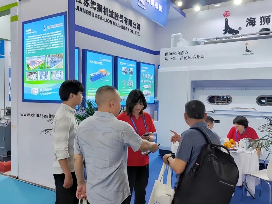 在本次展會上,海獅機械成為焦點。本公司擁有獨家知識產(chǎn)權(quán)的海獅醫(yī)用床墊一體機憑借獨特設(shè)計和卓越性能,贏得了參會者的高度贊譽。這款產(chǎn)品在醫(yī)用領(lǐng)域的獨特之處在于,它能夠解決醫(yī)院病房床墊難以批量清洗消殺的世紀難題,解決了醫(yī)用領(lǐng)域消殺全覆蓋的“痛點和盲點”,有效預防了醫(yī)院交叉感染風險。