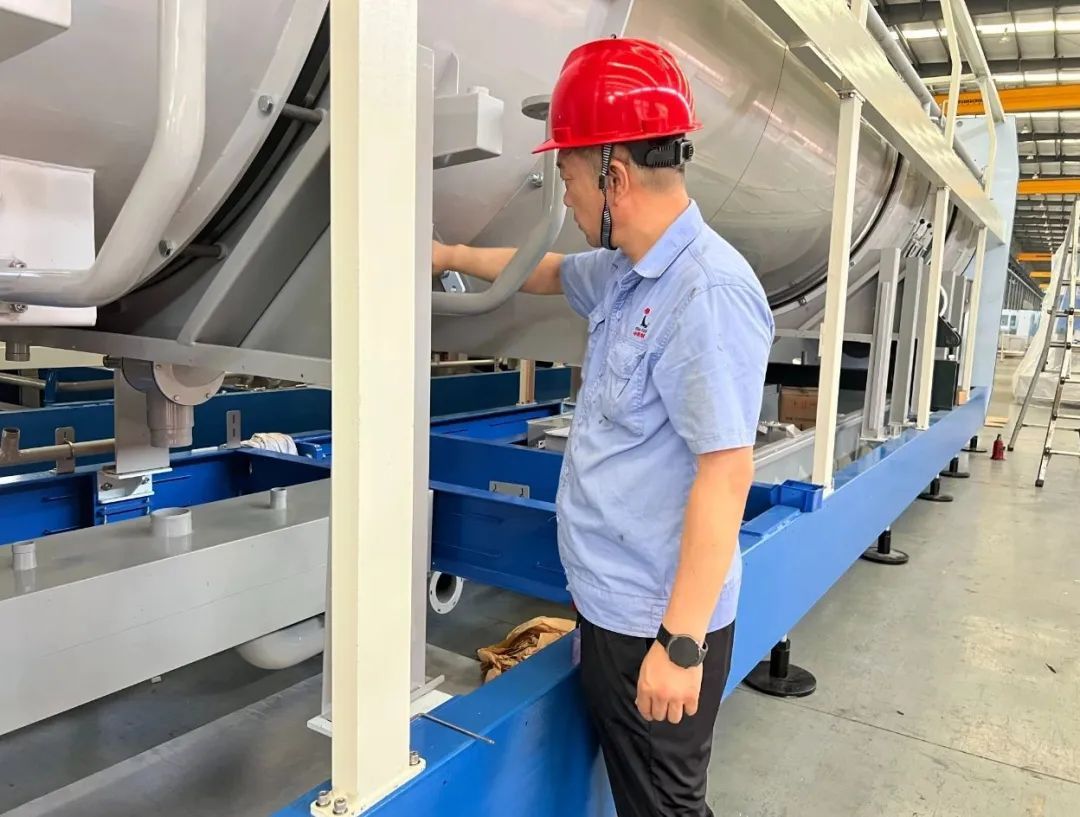 在海獅機械總裝車間,工人正有條不紊地進(jìn)行洗衣龍裝配工作。作為國內(nèi)首個擁有自主知識產(chǎn)權(quán)的洗衣龍,“海獅牌”工業(yè)用高效節(jié)能隧道式洗衣龍創(chuàng)新設(shè)計了下傳輸自動傳送主籠結(jié)構(gòu)及大跨度主籠連接密封技術(shù),解決了布草易堵卡以及連接密封不可靠、易老化、更換困難等技術(shù)難題,打破了國外壟斷,填補了國內(nèi)空白。