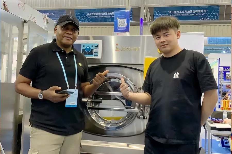 在已圓滿結束的第一期“先進制造”主題展會中,江蘇海獅機械股份有限公司作為工業(yè)洗滌機械領域的領軍企業(yè),積極參與了本屆廣交會,并向海內外參會者展示了海獅產品的精湛工藝和卓越品質,贏得廣泛贊譽。曾經購買過海獅設備的老客戶,此次也特意前來參觀。他們紛紛表示,海獅機械的產品質量過硬、節(jié)能效果顯著,即使在當?shù)貒揽恋臍夂颦h(huán)境下,海獅的水洗機、烘干機、洗衣龍系統(tǒng)、后整理設備都能保持穩(wěn)定運行,交出滿意的工作表現(xiàn)。