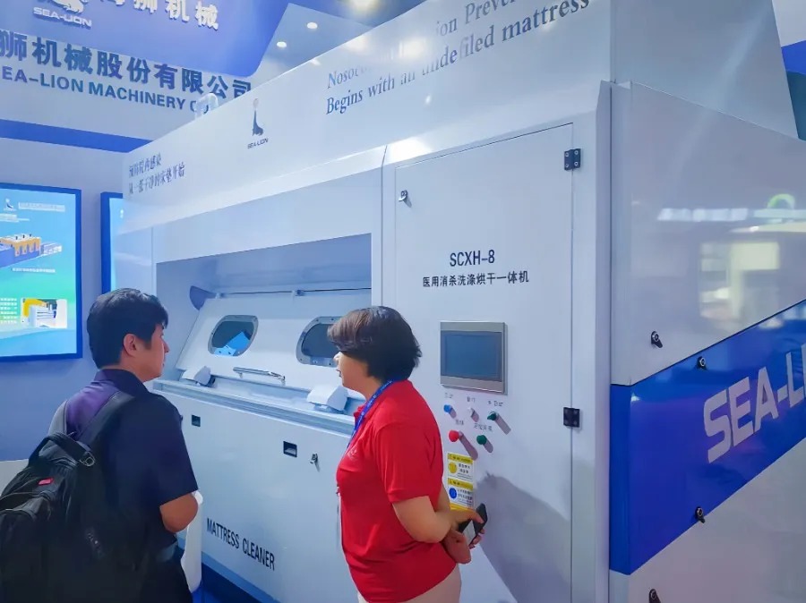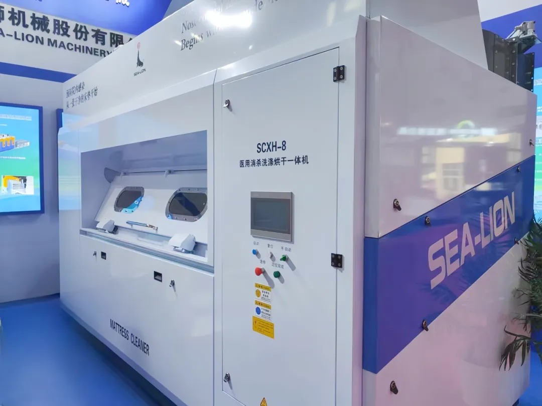 在本次展會上,海獅機械成為焦點。本公司擁有獨家知識產(chǎn)權(quán)的海獅醫(yī)用床墊一體機憑借獨特設(shè)計和卓越性能,贏得了參會者的高度贊譽。這款產(chǎn)品在醫(yī)用領(lǐng)域的獨特之處在于,它能夠解決醫(yī)院病房床墊難以批量清洗消殺的世紀難題,解決了醫(yī)用領(lǐng)域消殺全覆蓋的“痛點和盲點”,有效預防了醫(yī)院交叉感染風險。