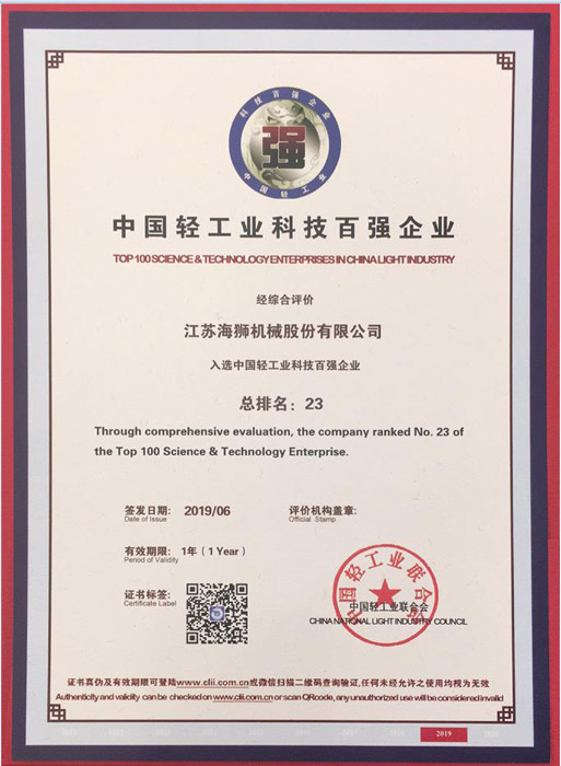 今日江蘇海獅機械股份有限公司榮獲了中國洗滌機械行業(yè)十強首位,中國輕工業(yè)裝備制造行業(yè)三十強企業(yè)第8位,中國輕工業(yè)科技百強企業(yè)第23位